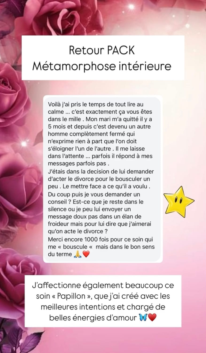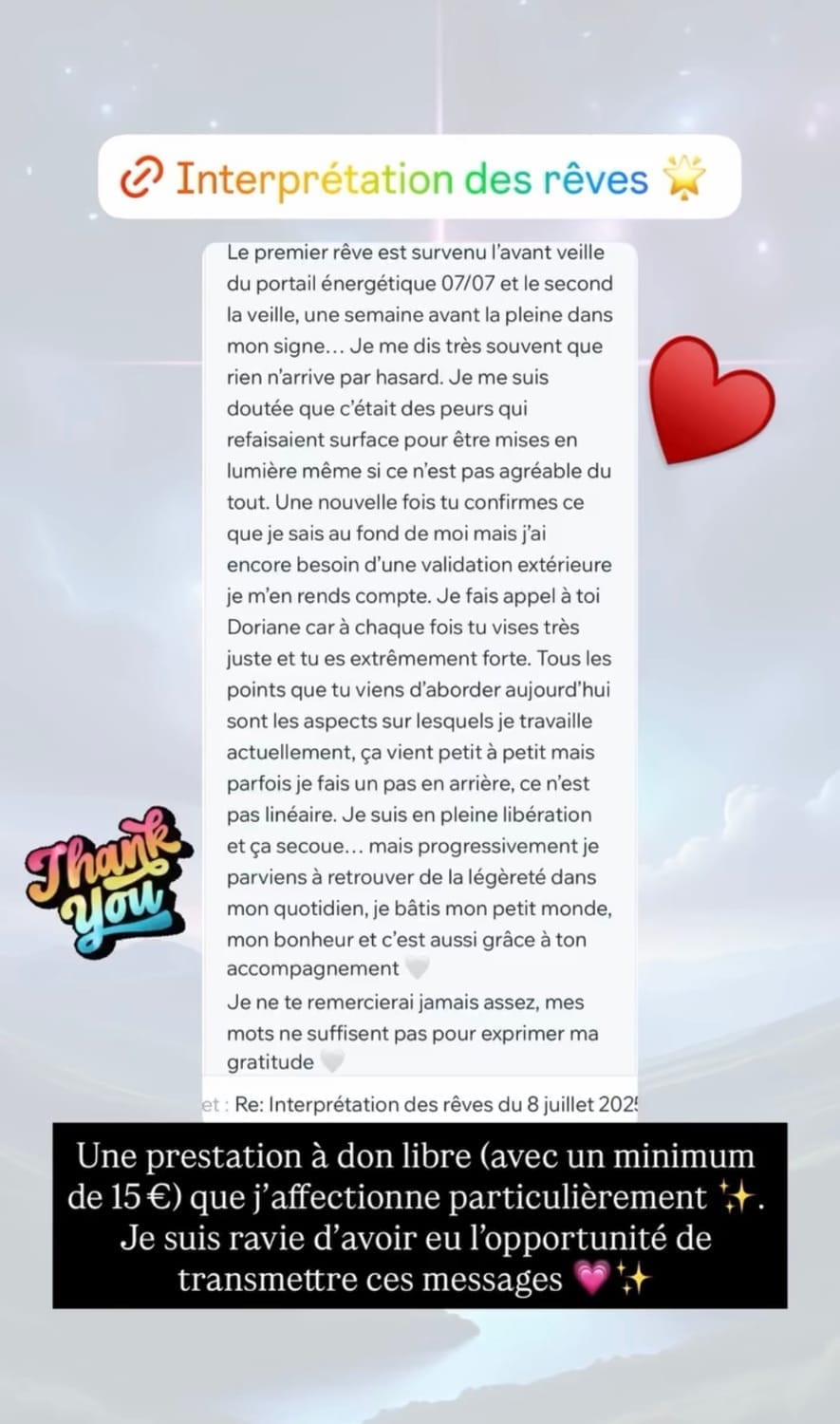 Ce que je propose n’est pas une simple “prestation” : c’est un espace sacré d’écoute, de guidance et de transformation.